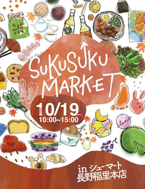 10月19日(日)、長野市のシューマート長野稲里本店で開催されます『SUKU SUKU MARKET』に出店させていただきます。